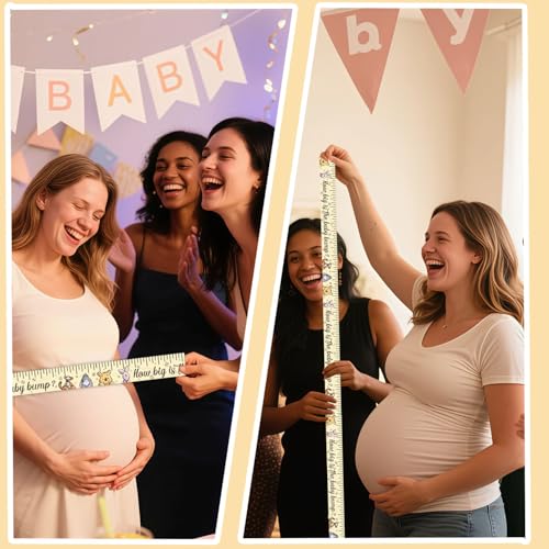 2 Rolls Bear Baby Shower Measuring Tape, Bear How Big is Mommys Belly Tape, Measure Baby Bump Tape, Tummy Measure Belly Game for Baby Shower Party, Pooh Party Decorations Supplies, 2 Inch x 150 Feet
