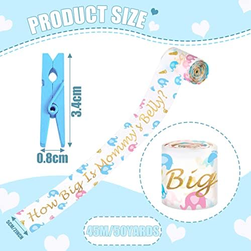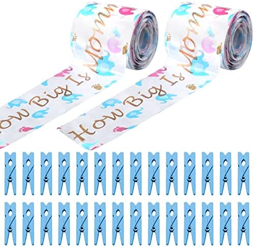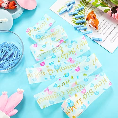 Baby Shower Games Set - Tummy Measuring Tape & Mini Clothespins, How Big Is Mommys Belly & Don't Say Baby Games for Shower Party Favors (Blue)