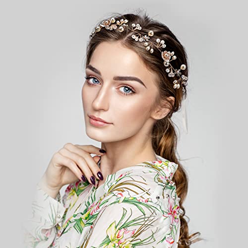 Sightor Flower Girl Headpiece, Wedding Headband for Women Crystal Pearl Hair Accessories for Birthday, Party, First Communion,Wedding Bride Bridesmaids Hair Jewelry