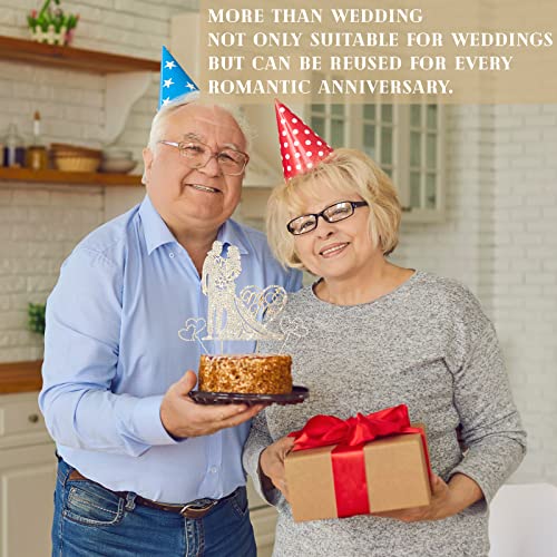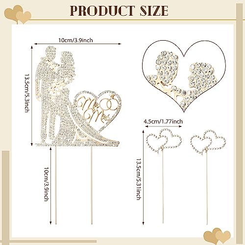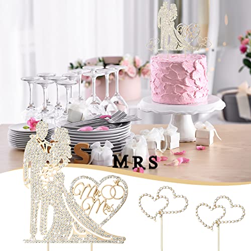 3 Pack Mr and Mrs Cake Wedding Topper Rhinestone Metal Love Wedding Cake Topper Crystal Heart Shaped Funny Diamond Bride and Groom Anniversary Party Decoration Gold