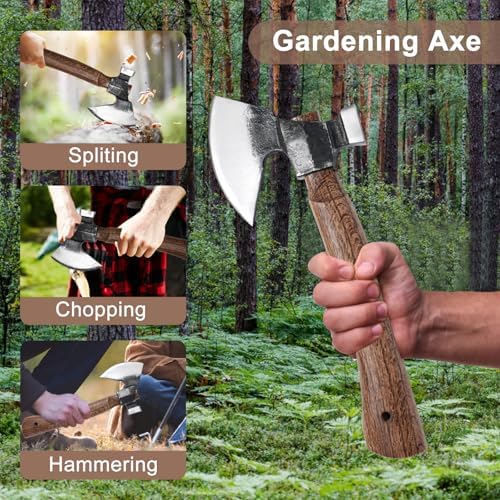Sponsored Ad - Wood Splitting Axe with Leather Sheath,Camping Hatchet with 10.74" Solid Handle,Bushcraft Axe with Hammering for Gardening,Chopping, Felling, Survival,Carving