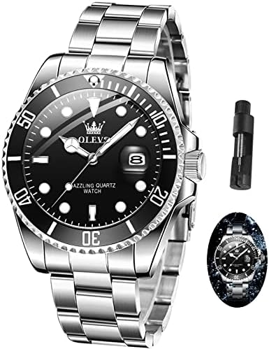 Men Watch,Big Dial Watches for Men Stainless Steel Watch with Day Waterproof Analog Quartz Watches for Man Classic Business Wristwatch Luxury Luminous Round for Men Rotatable Bezel Watch
