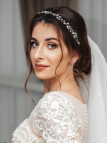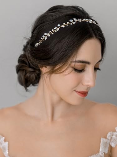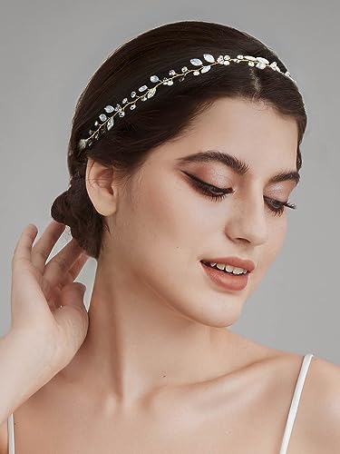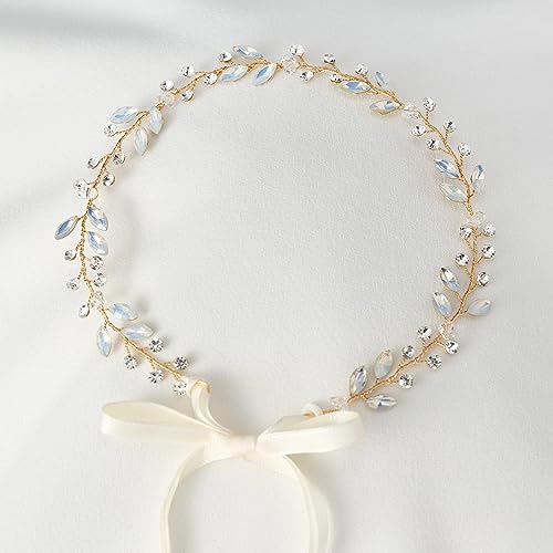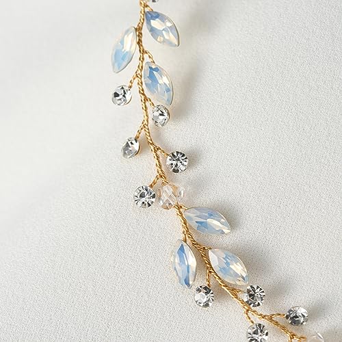 SWEETV Leaf Wedding Headpieces for Bride Opal Bridal Headband with Crystal Women Handmade Wedding Hair Accessories