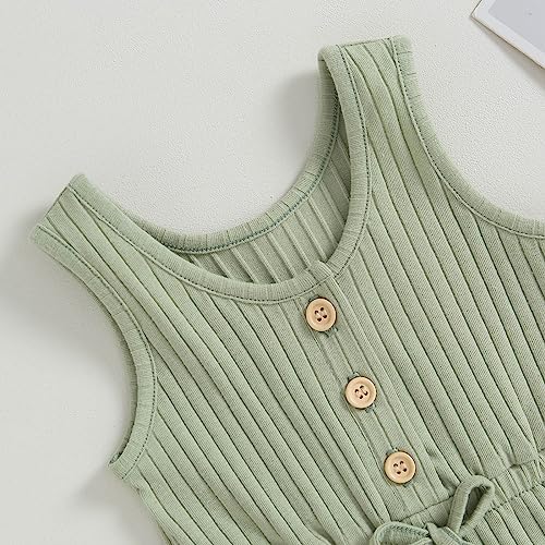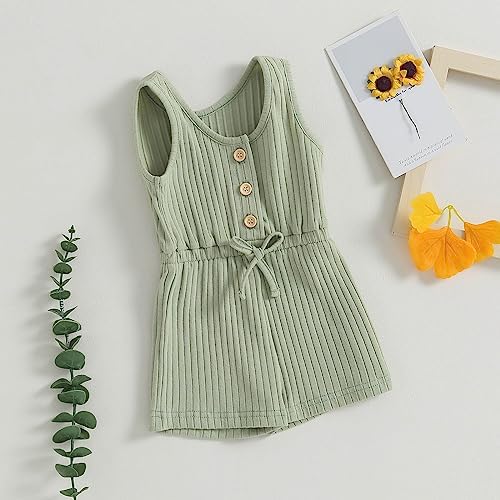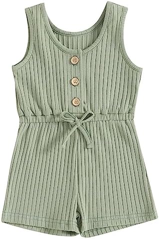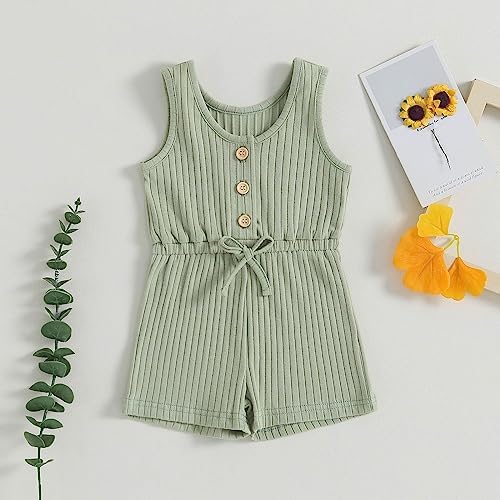 Toddler Baby Girl Summer Romper Ribbed Clothes Infant Baby Jumpsuit Button Down Rompers Clothing 0-5T
