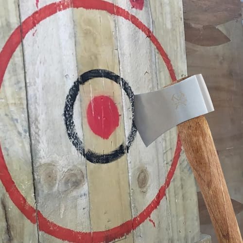 Camping Hatchet, 14.4" Survival Throwing Axe with Sheath, Survival Hatchet with Ergonomic Wood Handle for Camping, Chopping and Hiking