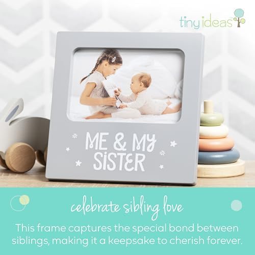 tiny ideas Me and My Sister Picture Frame, Baby Keepsake Frame, Sibling Gifts for Sisters, Brothers, Birthday, Shower, Baptism, Newborn Nursery Decor, 4x6 Photo Insert, Gray