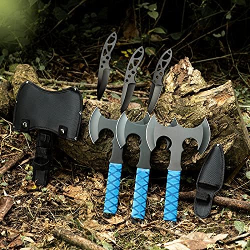 Throwing Axes and Tomahawks Double Sided Set,10 inch Full Tang Stainless Steel,Protective Nylon Sheath,Throwing Hatchet for Competition and Recreation,Throwing Axe 3 Pack