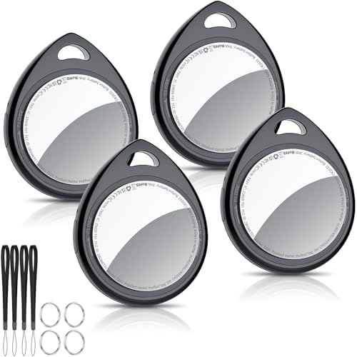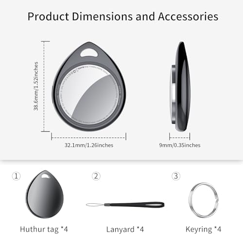 Air Tracker Tags-4 Pack, 5.3 Bluetooth Tracker Work with Apple Find My (iOS Only), 100dB Sound, Smart Tag with Keychain/Lanyard, Item Finder for Luggage/Key/Suitcase, Replaceable Battery, Black.