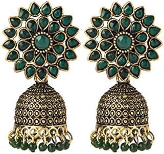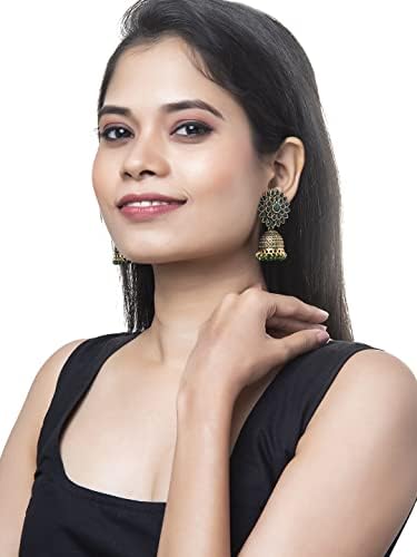 Sponsored Ad - Bodha Traditional Indian Gold Plated Antique Traditional Ethnic Jhumka With CZ & Pearls Earrings for Women