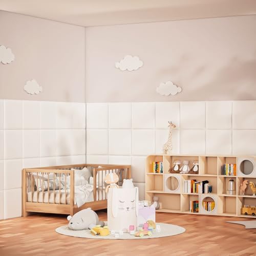 Sponsored Ad - 3D Anti-Collision Wall Padding for Kids, White Peel and Stick headboard Panels, Self-Adhesive Headboard Panels for Wall, Bedroom/Living Room Upholstered Wall Panel(4 Pack -11.8" x 11.8"