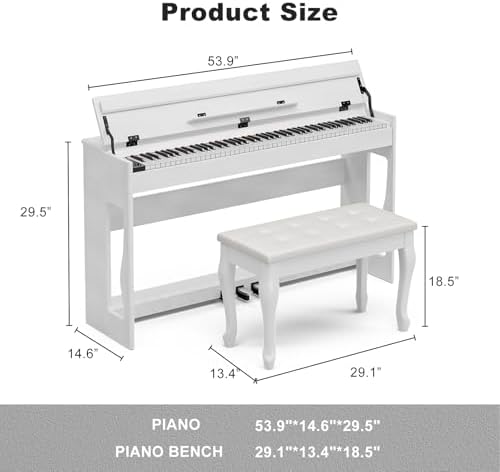Sponsored Ad - 88 Weighted Key Digital Piano with Duet Piano Bench, Beginner Keyboard Piano Full Size Heavy Hammer Weighted Action Electric Piano Keyboard with USB MIDI, White