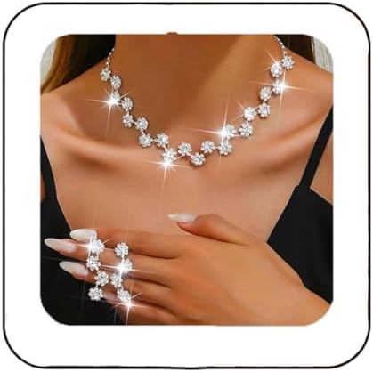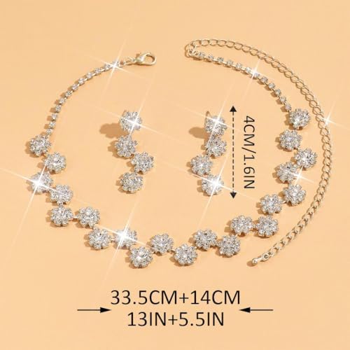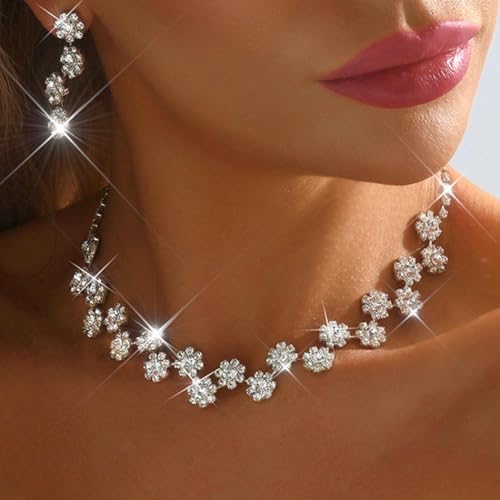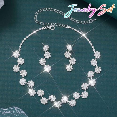 Unicra Silver Rhinestone Bridal Wedding Jewelry Set Crystal Necklace Earrings Bracelet Sets Formal Costume Jewelry for Women and Brides