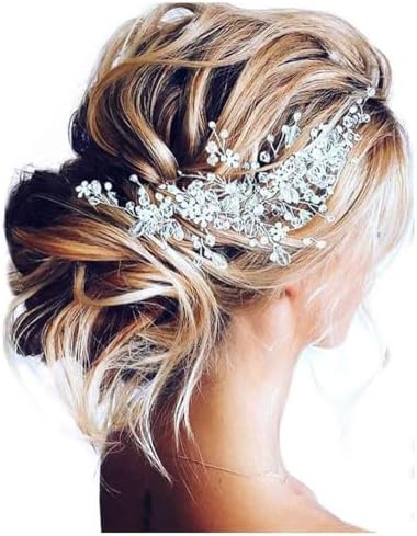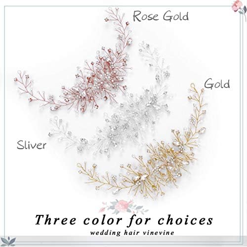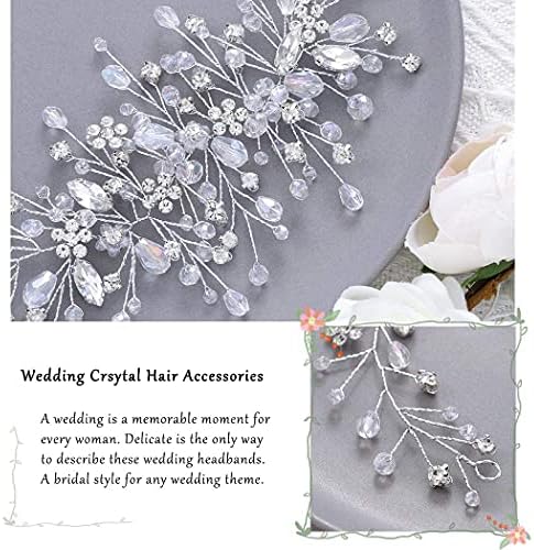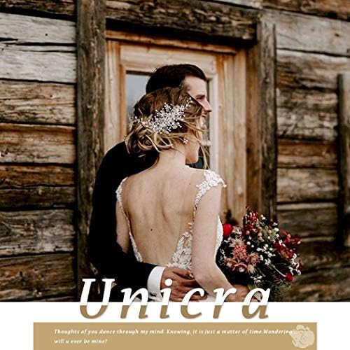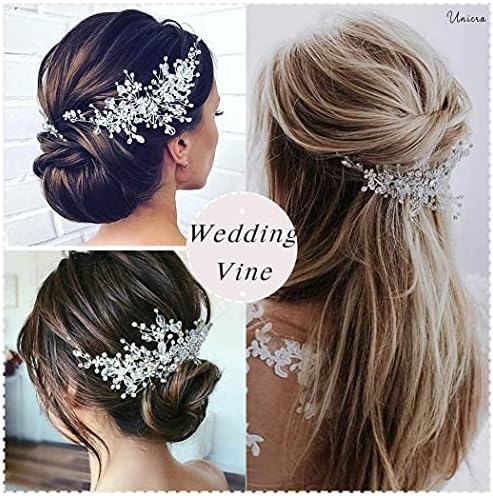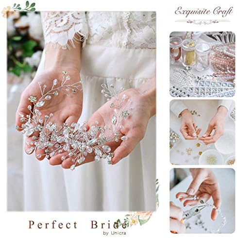 Unicra Bride Flower Wedding Hair Vine Crystal Bridal Piece Rhinestone Party Accessories Leaf Jewelry Bead Headpiece for Women and Girls
