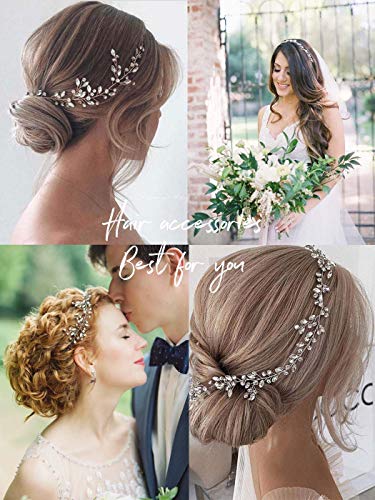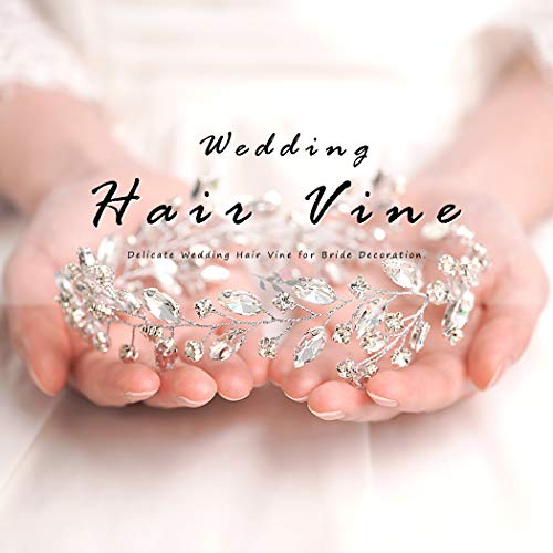 Unicra Bride Wedding Rhinestone Hair Vine Bridal Silver Hair Piece Crystal Headband Hair Accessories for Women and Girls (17.7inches) (Silver)