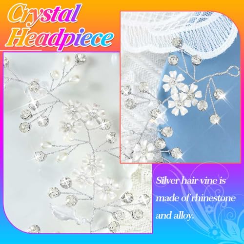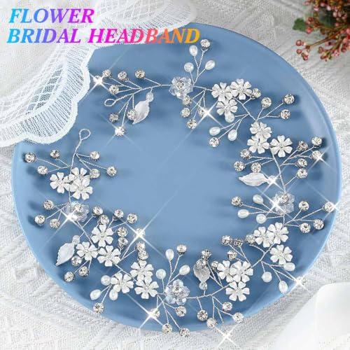 Unsutuo Flower Bride Wedding Headbands Silver Crystal Bridal Headpieces Leaves Hair Vine for Women and Girls (Silver)