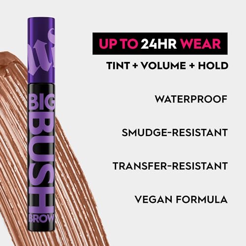 Big Bush Volumizing Tinted Eyebrow Gel, Waterproof, Smudge-Resistant, Flake-Resistant, Buildable Brow Gel Fibers, Long-lasting, Up to 24 HR Hold, Nourishing Castor Oil, Vegan - 0.19 fl oz