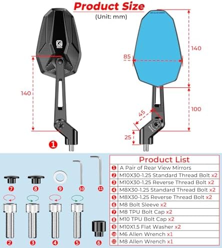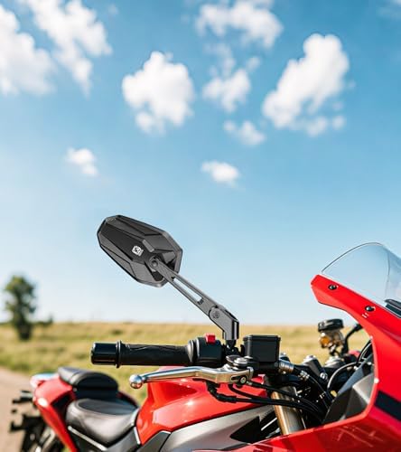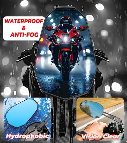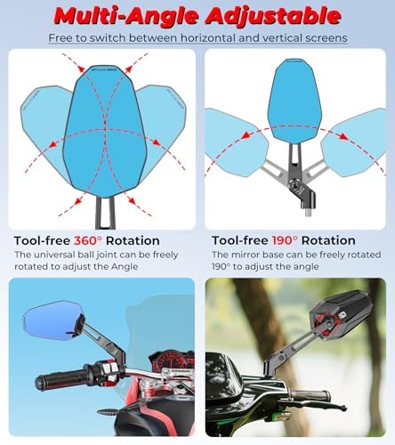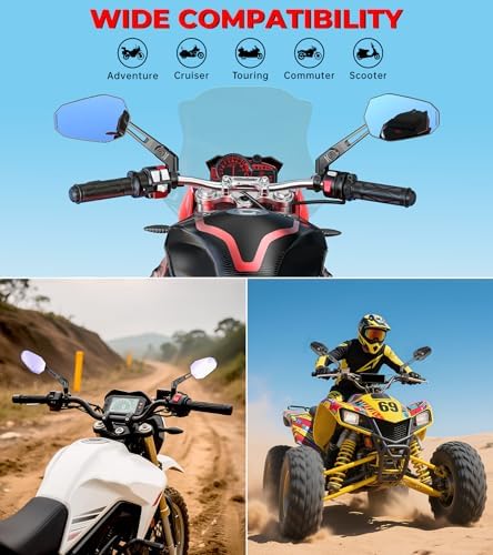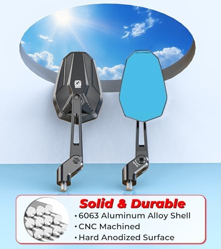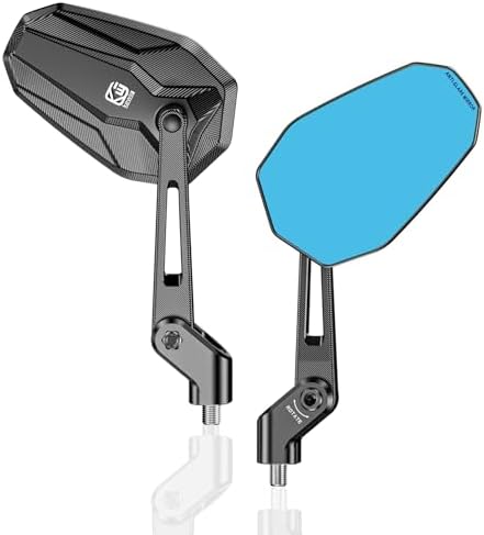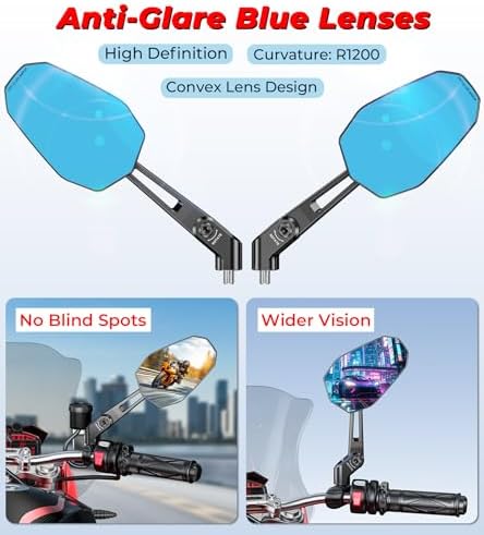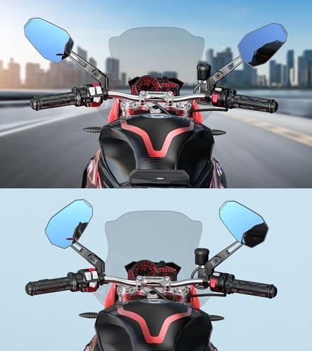 Sponsored Ad - Aluminum Alloy Waterproof Motorcycle Mirrors with M8 M10 Bolts, CNC Machined Anti-Glare Blue Lenses Rear View Mirrors, Foldable Multi-Angle Adjustable for Motorcycle ATV Scooter Moped C
