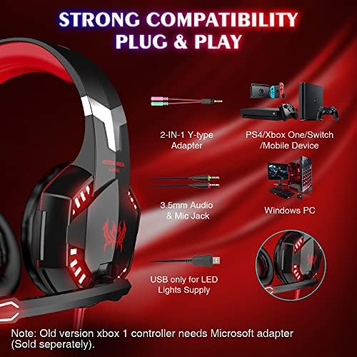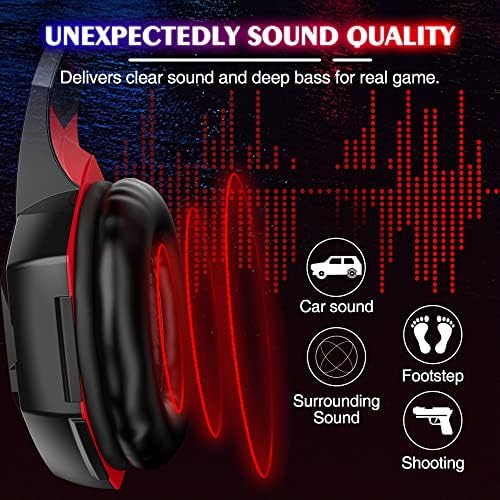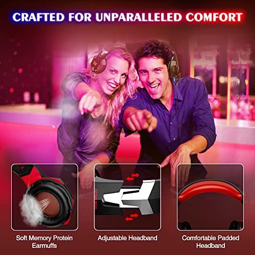 VersionTECH. G2000 Gaming Headset, Bass Surround Gaming Headphones with Noise Cancelling Mic, LED Lights, Soft Memory Earmuffs for PS5/ PS4/ Xbox One Controller/Laptop/PC/Mac/Nintendo NES Games-Red