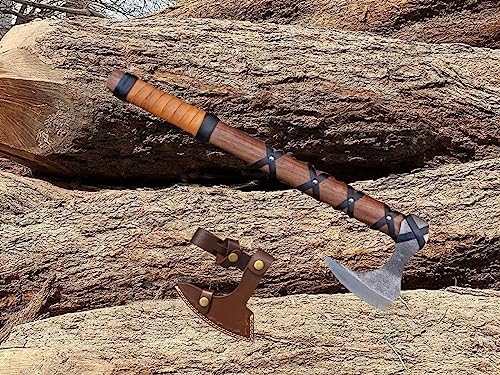 Viking Axe of Ragnar Lothbrok Hunting Axe Hand-Forged High Carbon Steel Sharp Blade Bearded Viking Axe Shaft Rosewood Handle Hatchet Camping, Valhalla Axes, Authentic Medieval Norse Axe, (VK-Axes-03)