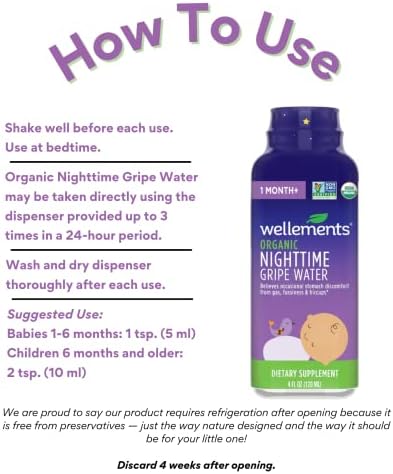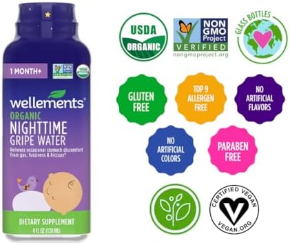 Sponsored Ad - Wellements Organic Nighttime Gripe Water for Babies 1 Month+ (4 Fl Oz) - Baby Gripe Water for Bedtime Relief Gas, Colic & Fussiness - Herbs Promote a Peaceful Night’s Sleep - USDA Certi
