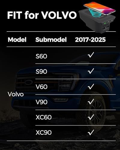 Car Wireless Phone Charger for Volvo 2017-2025 XC90 XC60 S90 S60 V90 V60 2025 2024 2023 2022 2021 2020 2019 2018 2017 Center Console Accessories Charging Pad