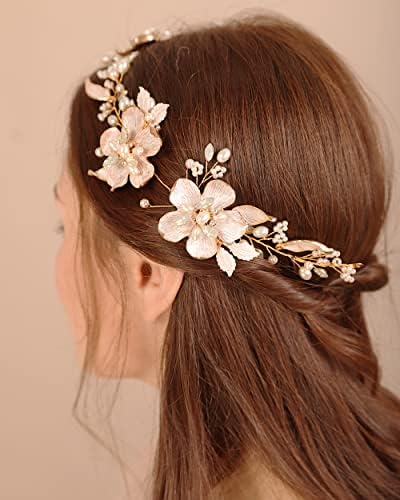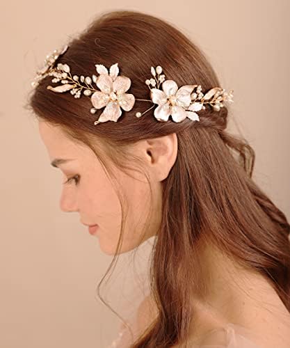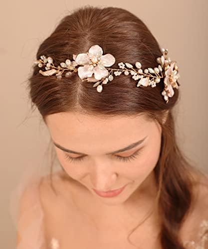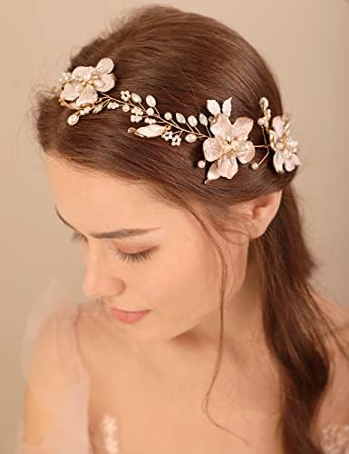 Xerling Wedding Flower Hair Vines for Brides Opal Crystal Hair Piece Floral Hair Accessory for Girls Pearl Head Chain Heavy