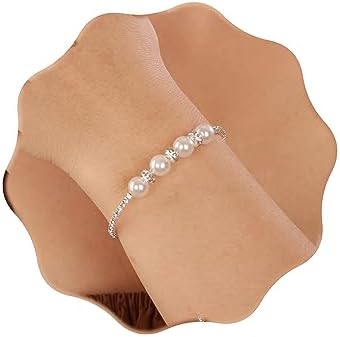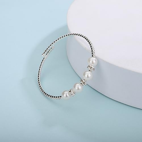 YERTTER Simple Vintage Open Cuff Pearl Crystal Bangle Bracelet Rhinestone Pearl Bangle Bracelet Gift for Women Brides for Prom Party Wedding Dating