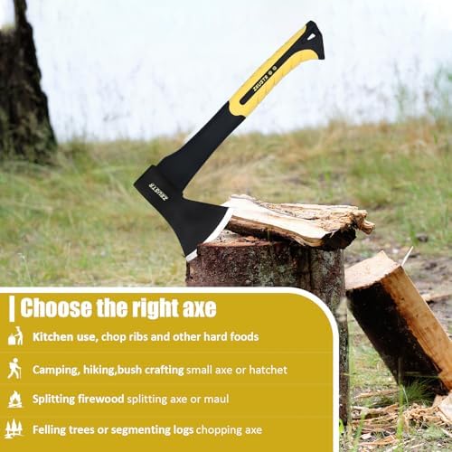 Small Camping Axe, Forged Steel Blade with Shock-Absorbing Handle, Outdoor Hatchet for Camping&Kitchen, Wood Chopping and Kindling